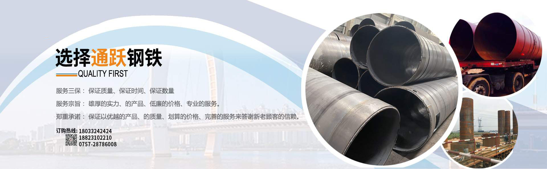 佛山市通躍鋼鐵有限公司 電話188-2310-2210 0757-28786008 擁有多條美國先進(jìn)的螺旋鋼管生產(chǎn)線,生產(chǎn)直徑φ159-φ3620mm(壁厚6mm-20mm)的雙面埋弧螺旋焊鋼管,年生產(chǎn)能力15萬噸。 生產(chǎn)螺旋管 螺旋鋼管 螺旋焊管 規(guī)格厚度6mm-20mm 直徑159mm-3620mm 有多條鋼板卷管機(jī)生產(chǎn)規(guī)格厚度6mm-70mm 直徑400mm-5020mm 螺旋管 螺旋鋼管 鋼護(hù)筒 焊接鋼護(hù)筒 鋼板卷管 丁字焊管 加工格構(gòu)柱 鋼管樁 材質(zhì)Q235B Q345B Q235A 45# 20# Q420D Q390D 錳板 歡迎來電報(bào)價(jià),公司配有大型型材 鋼板倉庫,大量各種規(guī)格現(xiàn)貨H型鋼 槽鋼 角鋼 工字鋼 鋼板,鍍鋅方管 鍍鋅產(chǎn)品 產(chǎn)品可以定尺定長(zhǎng),提供打砂,除銹,上油漆,公司配有防腐加工廠,專業(yè)對(duì)鋼管進(jìn)行內(nèi)外壁防腐加工,鋼管外壁主要有三油兩布,五油三布,環(huán)氧煤瀝青及環(huán)氧樹脂漆,各種高分子涂料。 ......